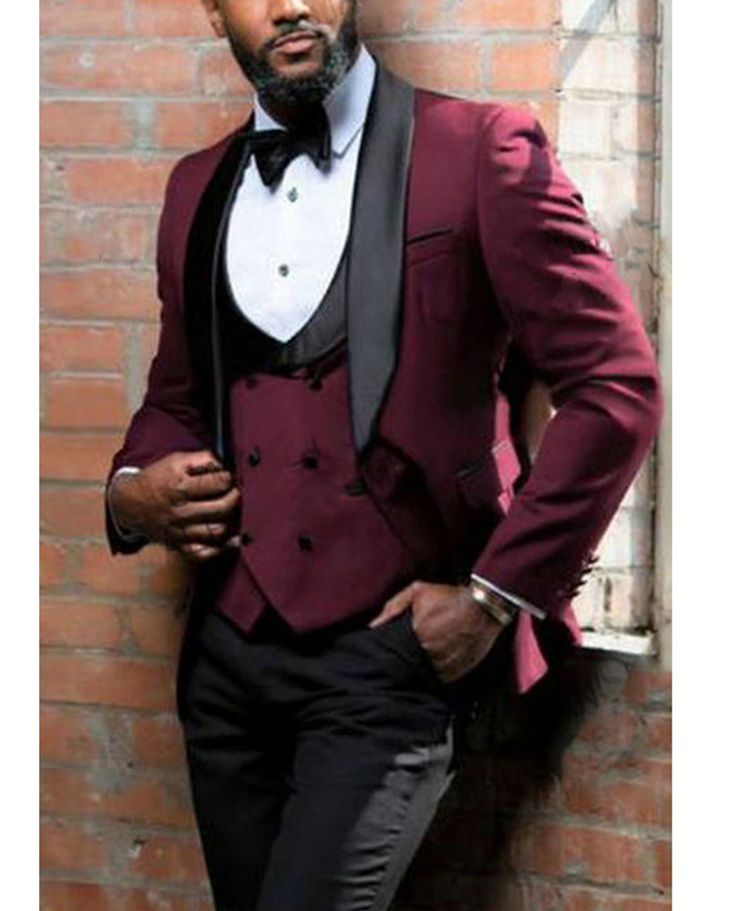 Burgundy Wine Red Wedding Tuxedo for Men Party Prom Tuixedo Suits 3 Pieces CB3514