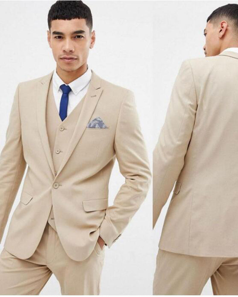 Champagne 3 Pieces Men Formal Wedding Suits ,Prom Suits 2020 trajes de novia (Jacket +vest+Pants))