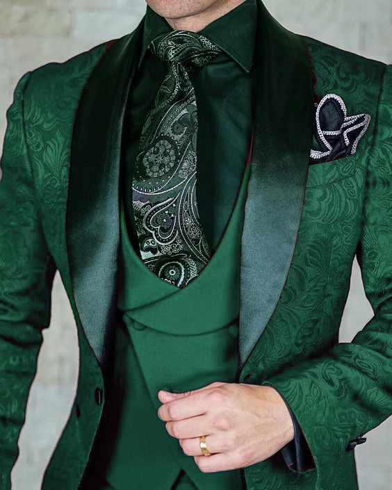 Classyby Shawl Lapel Jacquard Prom Suits for Men 2023 ,Wedding Tuxedos 3 Pieces (jacket+vest+pants)Color for Burgundy/Blue/Green