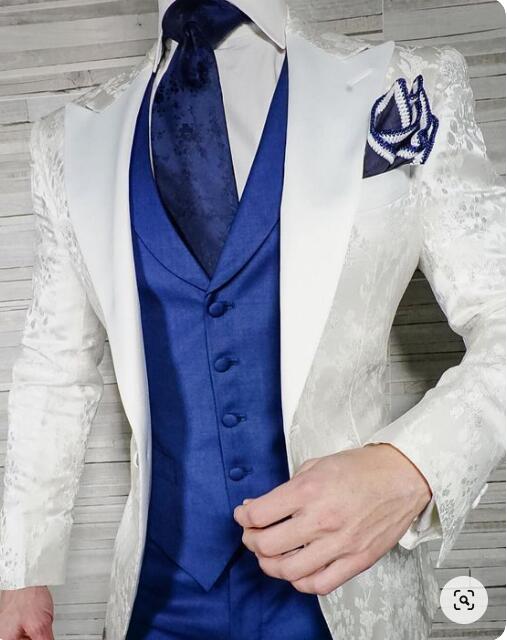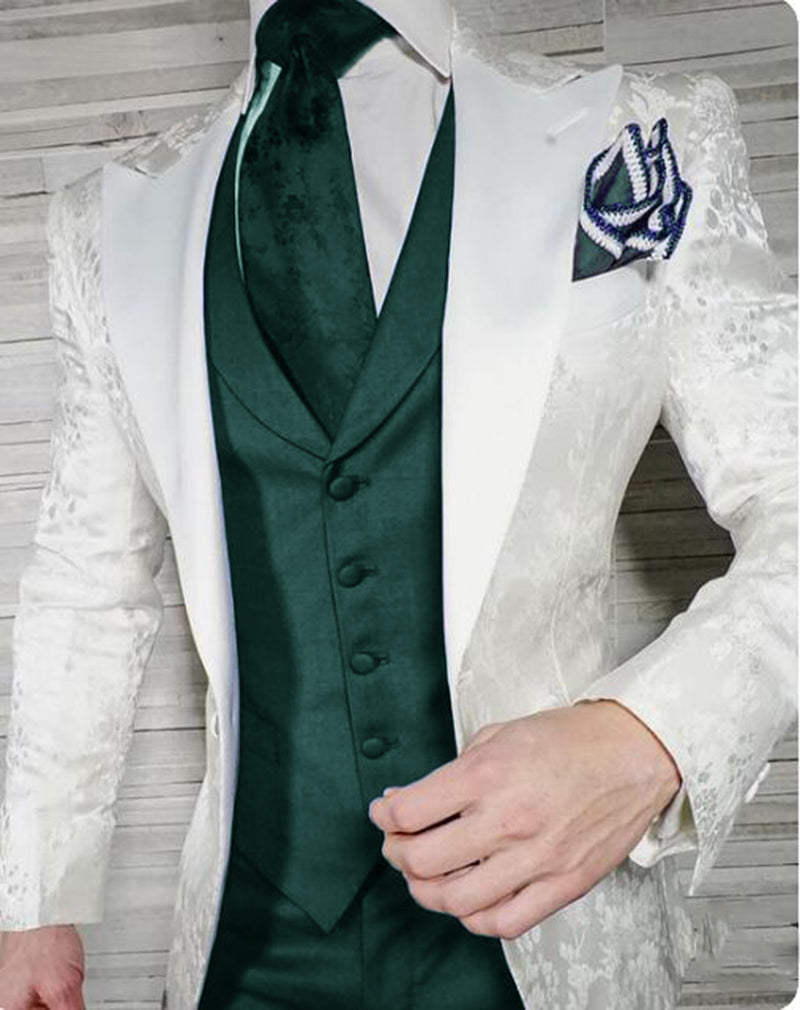 Custom Made gentleman Floral pattern groom white tuxedo with green vest Pants 3 Pieces Set CB1029