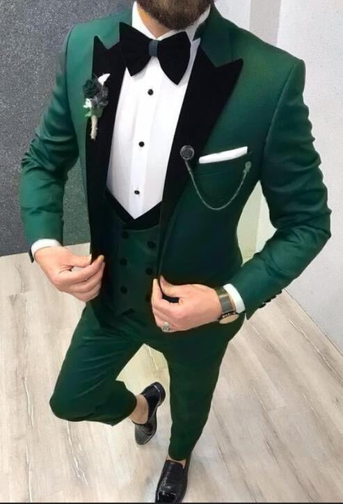 Dark Green Men Tuxedo for Wedding/Prom with Velvet Lapel3 pieces CB2374