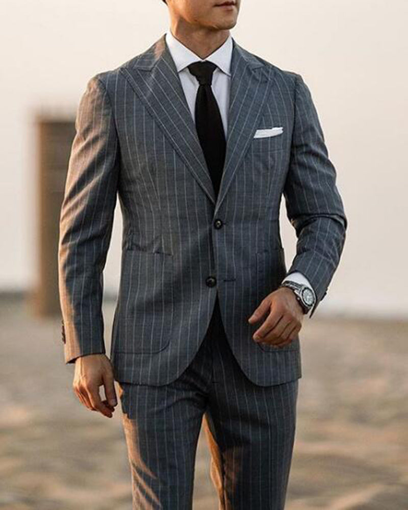 Gray Pinstripe Suits for Wedding Party Men's formal wear Business Suits 2 Pieces (Jacket+pants)CB08162