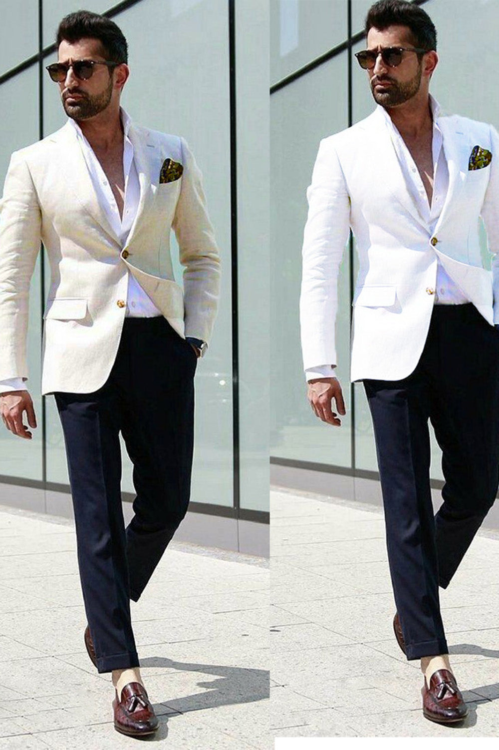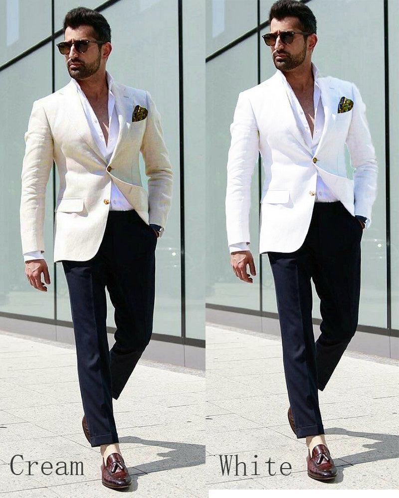 Smart Casual Outfits white/Cream lazer for Men 2 Pieces (Blazer+Black Pants)CB110291