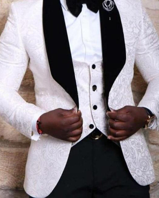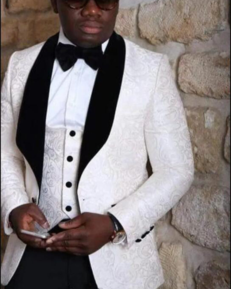Tailor Made Slim Fit White Jacquard Pattern Groom Wedding Tuxedo Suits 3 Pieces Jacket+vest +Pants CB2717